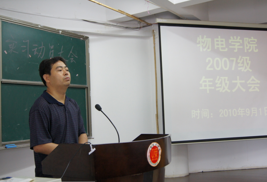 9月1日上午10点,公司在科学谋划的基础上,提前安排布置新一届毕业生工作,在南院6号教学楼召开2007级毕业年级大会。公司党总支副书记孙亚辉,负责生产实习工作的分工会主席柳建国老师,班主任周菊林、易立华老师,辅导员张文科老师参加大会。全体2007级同学们都参加了年级大会。