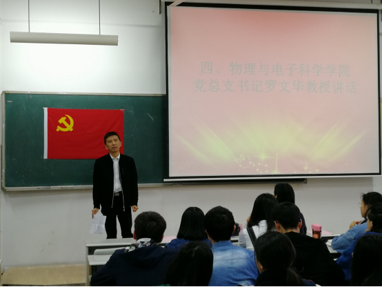 本次党课讲座主要由副董事长张国云、总支书记罗文华、总支副书记孙亚辉、员工党支部书记张恒道四位老师依次为同学们讲解十九大精神、党规党章、入党条件以及党员发展程序。