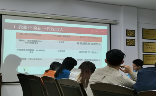 张陈武老师由近期前往深圳考察就业市场的经历,引出党课的主题—学习深圳“闯”“创”精神,勇担时代神圣使命。张老师围绕“我眼中的新一代深圳人”“深圳的成绩”等方面发表了讲话。
