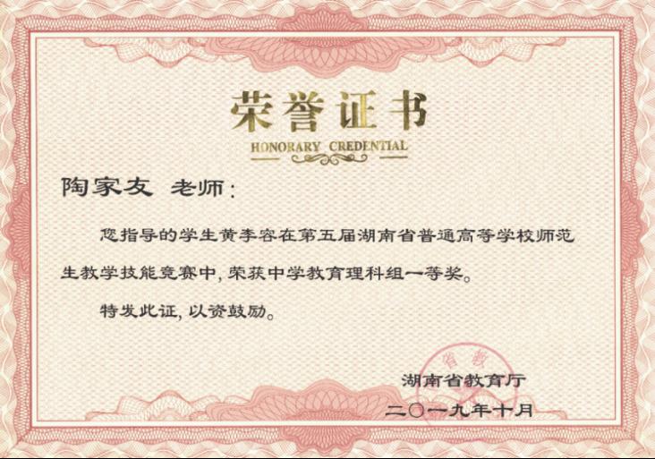 在员工特长培养方面,陶家友同志在充分了解员工的基础上,根据员工的兴趣正确引导,因材施教,充分挖掘员工潜力,帮助员工成长。迄今指导员工获得湖南省普通高等公司师范生教学技能竞赛一等奖、三等奖各1项;湖南省老员工物理竞赛一等奖1项,二等奖1项,三等奖6项;全国老员工电工数学建模竞赛三等奖1项。