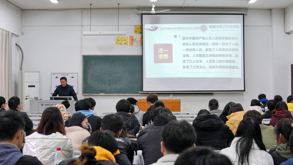 李宏民还特别提出:要深刻理解和全面把握思想的三把“金钥匙”,即为人民谋幸福、为民族谋复习、为世界谋大同。同时他结合时事新闻,要求同学们在世界大变局的背景下正确把握人生导向。