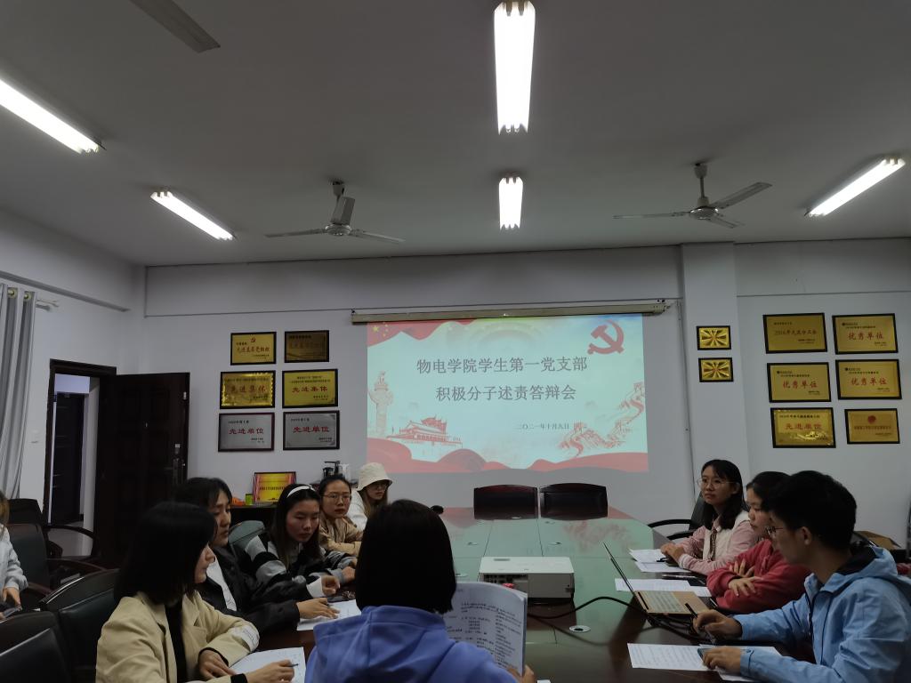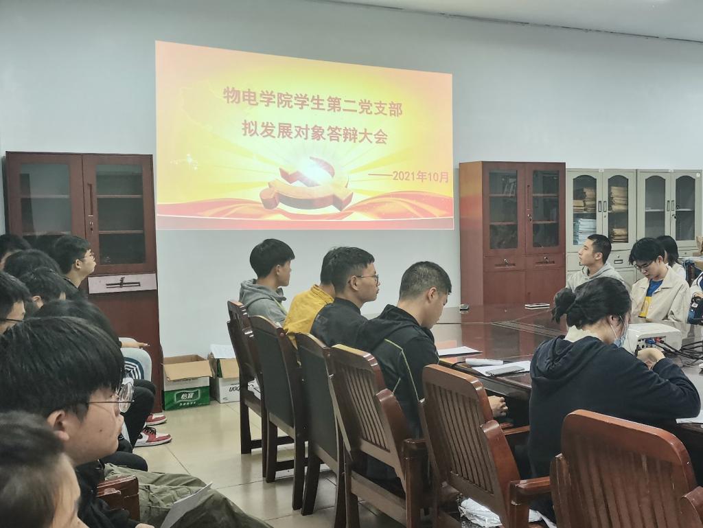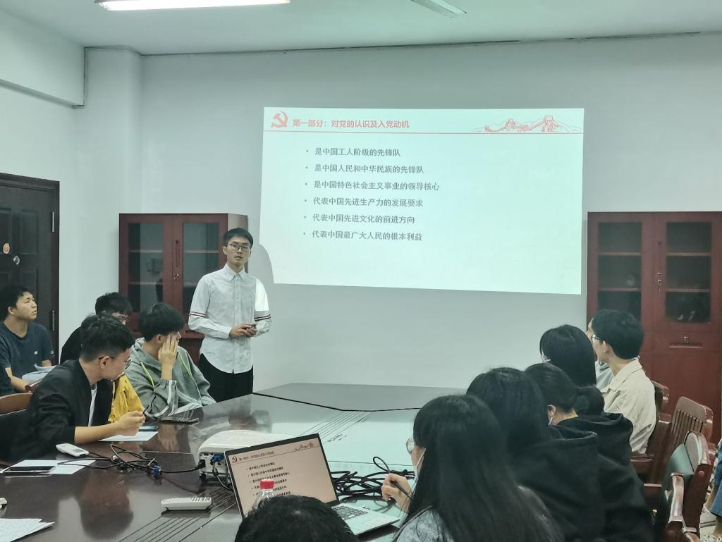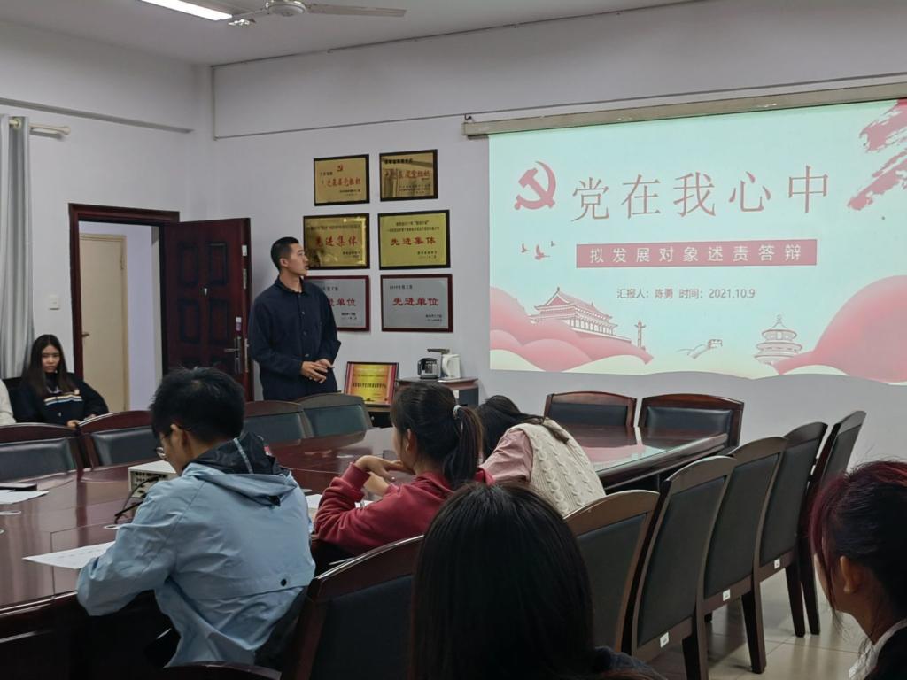 答辩会上,积极分子以PPT结合口头讲述的形式分别从自我介绍、对党的认识、入党动机以及入党决心四个方面表达了自己加入中国共产党的意愿,展示了入党积极分子过去一年来充分发挥的模范带头作用。此外,在每位入党积极分子论述完毕后,支部书记和在座党员就党章党规、党史知识对其进行提问,以考验入党积极分子对党的认识程度。