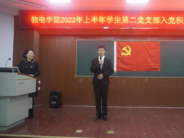 周畅对本次答辩大会进行总结。她对所有答辩同学的表现予以肯定,她强调党组织重点考察入党积极分子的政治标准,主要是入党动机、对党的认识、理论学习、先锋模范作用、思想品德等,同时指出了同学们在答辩过程中存在的不足。她要求入党积极分子进一步坚定理想信念,加强理论学习,特别是要精读《共产党宣言》和习近平新时代中国特色社会主义理论等经典著作和文献,进一步端正入党动机,增强“四个意识”,坚定“四个自信”,做到“两个维护”,捍卫“两个确立”,主动定期进行书面思想汇报,以优异的表现积极向党组织靠拢。