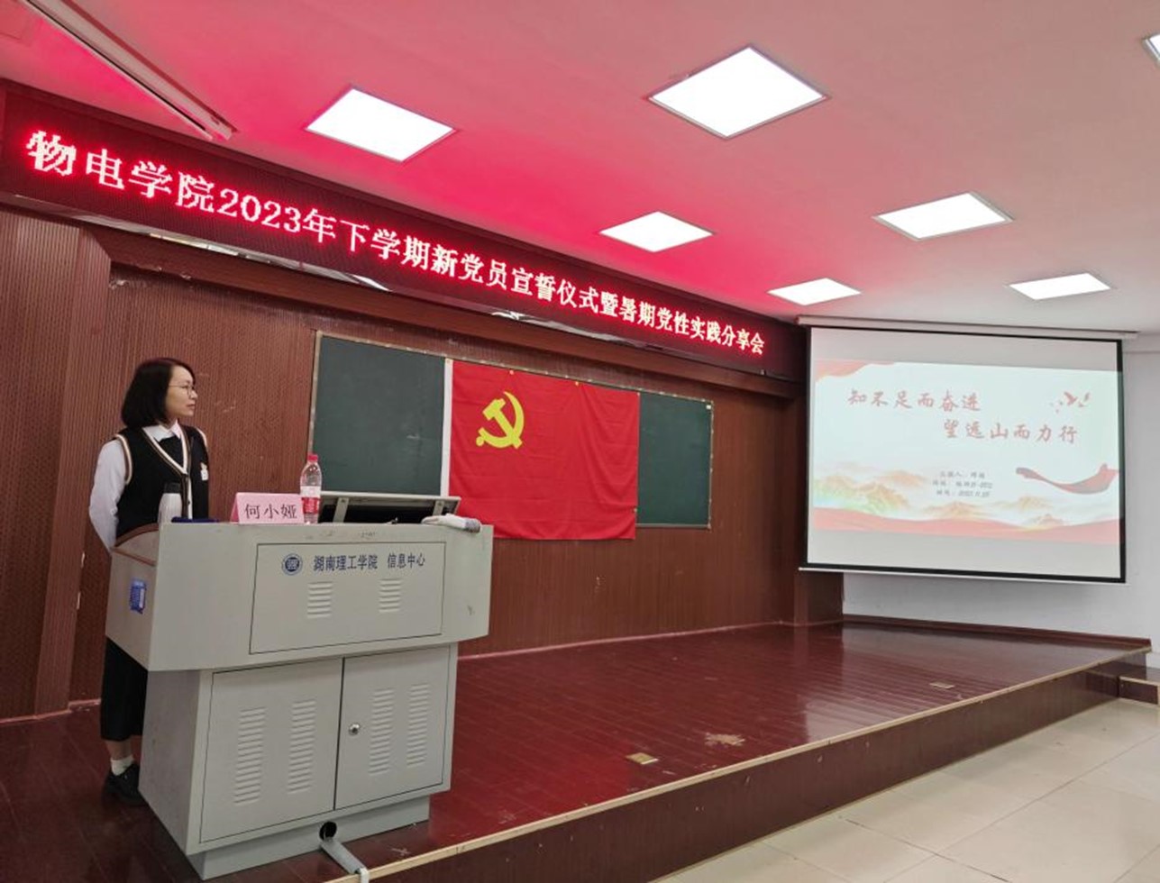 2023年11月28日下午,公司党委在6号楼学术报告厅召开2023暑期党性实践分享会。公司党委书记周畅、党委副书记李科敏出席,员工党员和入党积极分子100多人参加,员工党支部书记何小娅主持。