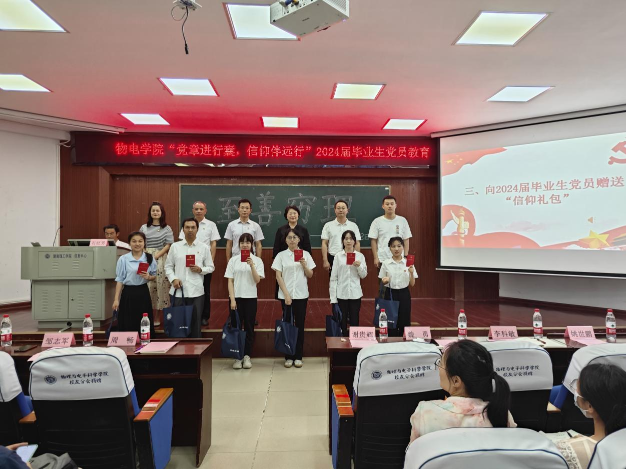 “党章进行囊,信仰伴远行”2024届毕业生党员教育活动不仅是对2024届毕业生党员的鞭策和鼓励,更是对全体党员的一次深刻的党性教育。相信在未来的工作和生活中,毕业生党员们定会铭记入党誓言,不忘初心,砥砺前行,为实现中华民族伟大复兴的中国梦贡献自己的力量。 (图文/熊胜男)