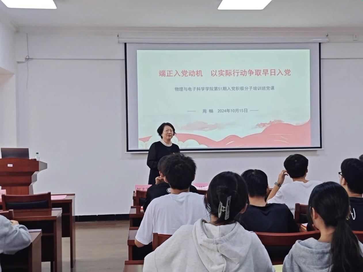 开班仪式结束后,公司党委书记周畅以“端正入党动机,以实际行动争取早日入党”为题进行了授课。她通过鲜活的实例对不同入党动机、目的等进行剖析,指出“全心全意为人民服务”才是唯一正确的入党动机。她强调了加强党性修养是端正入党动机的根本途径,并讲解了党性的内涵、修养、内容以及如何提高党性修养。