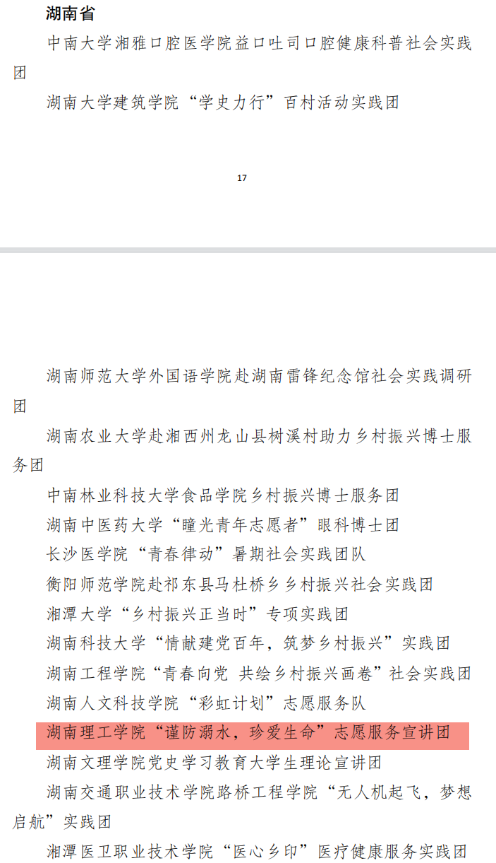 2021年12月31日,共青团中央青年发展部公布了2021年度“三下乡”社会实践优秀团队公示名单,遴选出388个“三下乡”社会实践优秀团队。公司“谨防溺水,珍爱生命”志愿宣讲团入选2021年全国大中专员工志愿者暑期“三下乡”社会实践活动优秀团队。