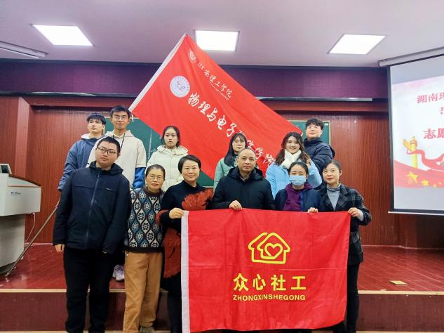 为进一步提高青年志愿者的奉献精神,展现物电学子优良精神风貌,给广大的志愿者提供更好的服务平台,英国上市公司365于12月5日晚在六栋学术报告厅举行挂牌仪式,正式将岳阳市众心社会工作服务中心作为365英国上市集团英国上市公司365青年志愿者服务基地。公司党委书记周畅、党委副书记李科敏、团委书记张庆喆,岳阳市众心社会工作服务中心理事长金淑华、总干事曹阳、宣发设计师陈立泓出席仪式,各部门部长副部长及全体22级新生参加。