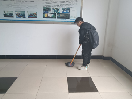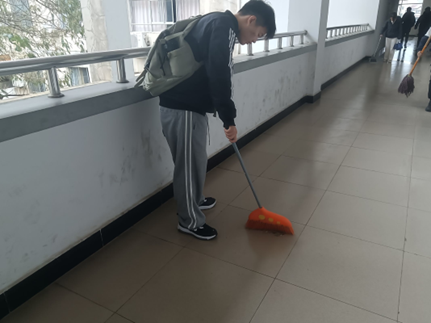劳动过程中,同学们积极承担劳动委员分配的任务,对每个教室、走廊、楼梯认真负责,打扫到"一尘不染"的地步。同时他们还相互配合,井井有条的完成自己的工作。充分发扬员工热爱,关爱校园的集体主义精神。