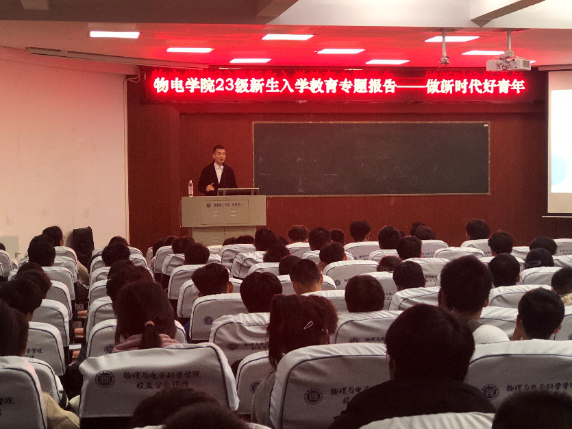 10月7日晚,公司在南院6号教学楼学术报告厅举行题为“做新时代好青年”报告会。公司邀请湖南大学干部培训中心吴振华老师主讲,辅导员熊彦淇及全体2023级新生参加,公司党委副书记李科敏主持。