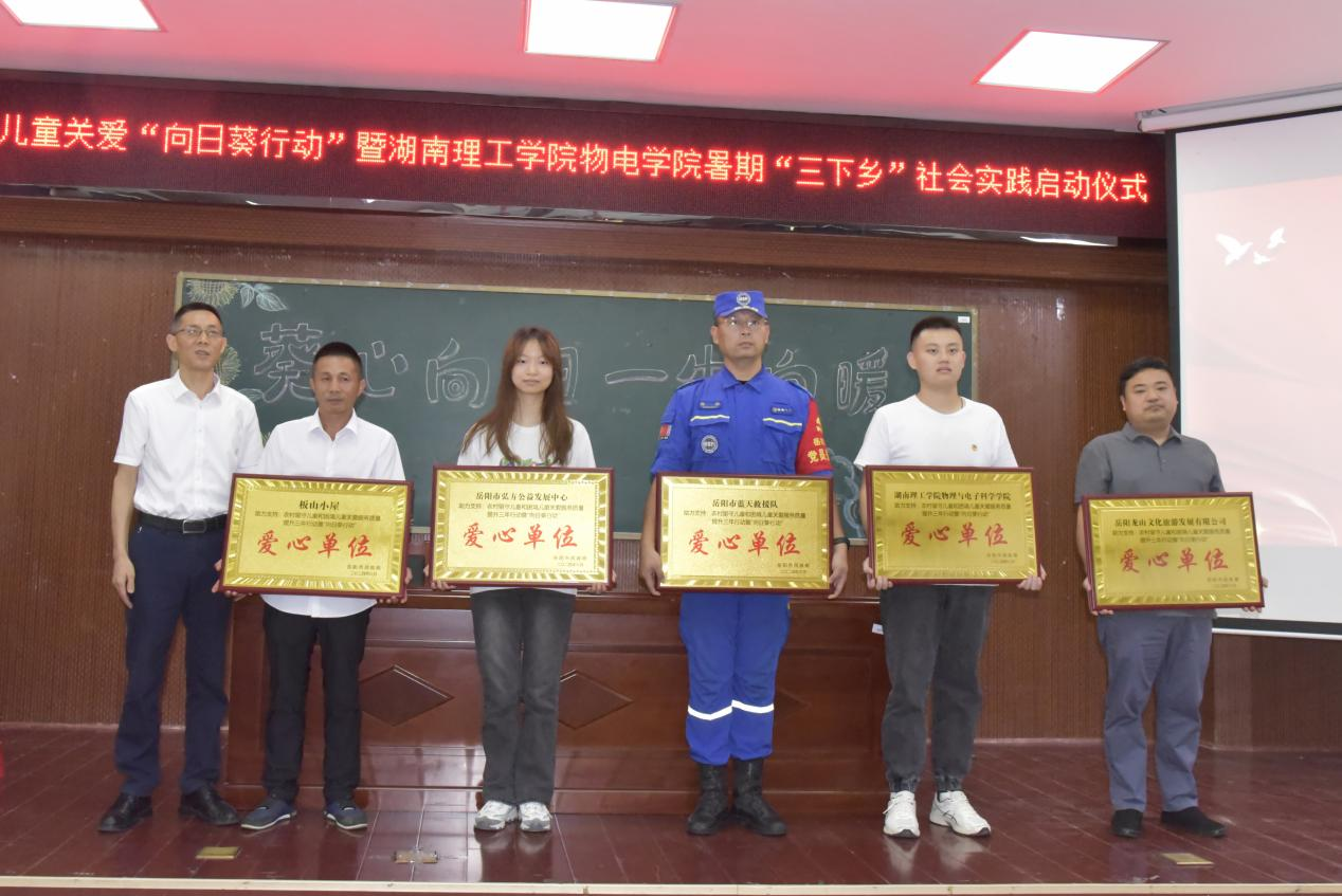 陈平刚为365英国上市集团英国上市公司365、岳阳市蓝天救援队、岳阳市弘方公益发展中心、岳阳市龙山文化旅游发展有限公司、板山小屋等五家“爱心单位”授予了“爱心单位”奖牌。