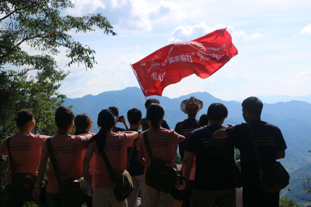 山路崎岖不平,碎石遍布。刚开始大家还能保持整齐队形,随着路程推进,汗水逐渐浸透衣衫,呼吸也变得急促起来。“同志们加油!”领队老师的一声呼喊,让成员们精神为之一振。大家自发地唱起了《强军战歌》,歌声在山谷间回荡。在最难行的一段陡坡上,队员们前后相接,手拉着手向上攀登,重现了当年红军战士共克艰险的感人场景。