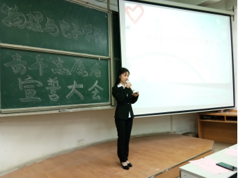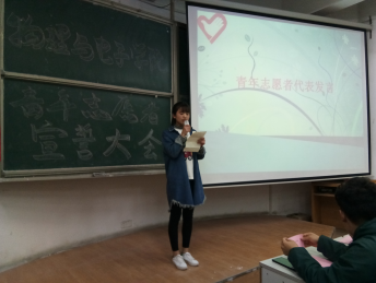 从交流中学习,从实践中成长。大会开始,我们观看了部分高校制作的志愿者活动宣传视频,从中学习到了更多服务社会的方式方法。随后青志部部长丁凤姣与志愿者代表刘琪的发表讲话。向同学们传递了爱的正能量,表明了自己融入社会,为国家和社会的建设奉献出力量的决心。呼吁越来越多的青年志愿者加入到志愿者服务的队伍中来,付出自己的行动。