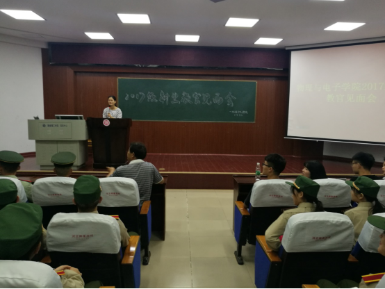 9月10日晚7点,​英国上市公司36517级新生教官见面会在6栋学术报告厅举行。岳阳武警支队的朱教官、潘教官,公司党总支副书记孙亚辉老师、17级辅导员何小娅老师以及各“军训助管”出席本次会议。