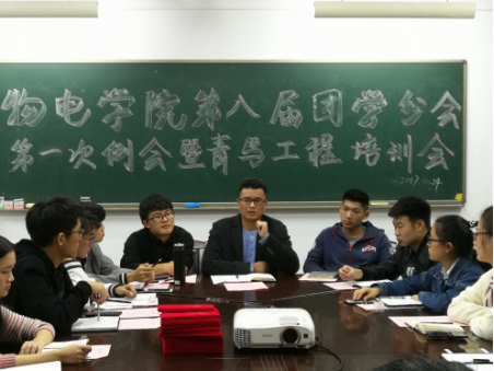 团总支书记张恒道老师听完大家的自我介绍,对新干事的创新思想表示赞赏。随后,张老师在思想观念、组织建设、个人能力等方面提出了要求。对如何做好一名员工干部做了报告。正确认识干部定位,不忘初心,牢记使命,以更高的标准要求自己的工作,在思想上提高自己的思想觉悟,加强自身修养高举团旗跟党走加强组织性纪律性。在工作中要及时反馈,提升自己的执行能力。