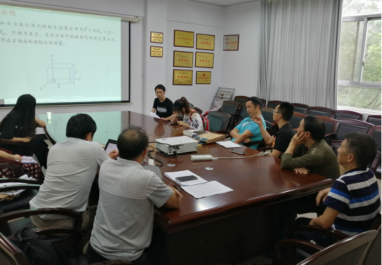 随后,分教研组开展“2020年教师信息化竞赛”和“2020年教师课堂教学竞赛”初赛和研讨活动。其中,物理学教研室的罗良博士利用“雨课堂”平台开展“数学物理方法”课程片断教学,李照宇博士结合“学习通”和“微信”平台开展“电磁场和电磁波”课程片断教学;基于工程教育认证,微电子教研室的钱坤博士和电子科学与技术教研室的冯伟博士理论联系实际,分别开展“数字电子技术”课程片断教学和“面向对象程序设计”课程片断教学;大学物理教研室的邹志军博士利用“九斗”app和腾讯课堂,开展大学物理片断教学。针对以上教师的初赛情况,各教研室成员结合立德树人根本任务,从课程价值、教学组织、教学方法、信息技术、课程资源、实践应用等方面提出意见和建议。