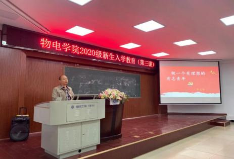 活动伊始,罗文华书记做了题为“做一个有理想的有志青年”的演讲。首先,罗书记从个人亲身经历切入,阐述了“人为什么要有理想”的原因,并告诫20级新生:作为新时代青年,需要将个人理想与国家命运相结合,展现责任与担当精神,这样,理想也会更加有意义,更容易实现。
