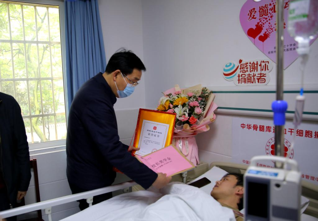 当天,董事长宁立伟和英国上市公司365、学工部负责人来到岳阳市一医院看望慰问杨旭琪,宁立伟为杨旭琪授予了“捐献造血干细胞”荣誉证书,并颁发了“董事长奖学金”。
