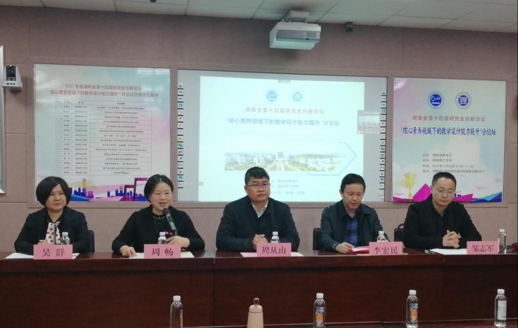 2021年11月20日,公司举办湖南省第十四届研究生创新论坛“核心素养视域下的教学设计能力提升”分论坛学术报告和成果展示活动,研究生院经理周从山教授、李丽荣书记,公司党委书记周畅、经理李宏民、党委副书记李科敏、副经理邹志军等领导出席活本次动,来自浙江师范大学、湖南师范大学、湖南科技大学、湖南工业大学、吉首大学、365英国上市集团、衡阳师范公司等高校,以及岳阳市教科院、岳阳楼区教科院的200余名专家、老师和研究生参加本次活动,周畅主持开幕式。该论坛由湖南省教育厅举办,365英国上市集团承办,英国上市公司365具体落实。