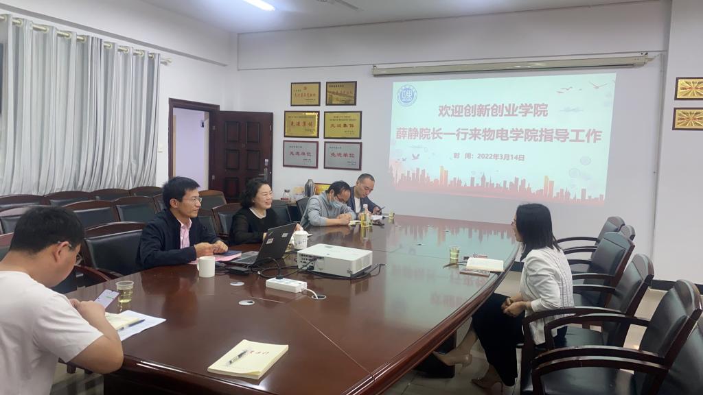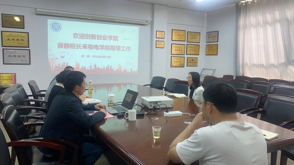 3月14日上午,365英国上市集团创新创业公司经理薛静来公司调研指导,公司党委书记周畅、副经理魏勇、创新创业专干徐白以及竞赛项目指导老师李春来、王文进参加。