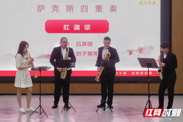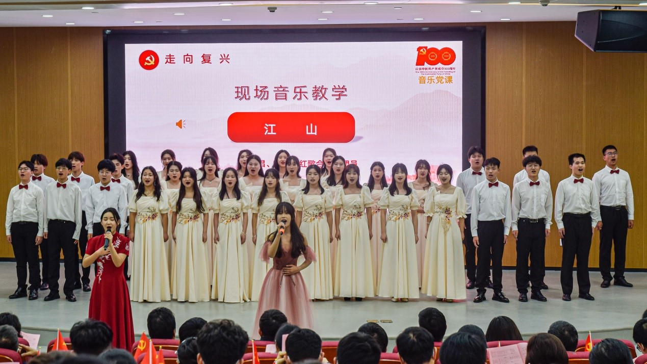 党课正式开始,黄皓华将党的百年历史分为“筚路蓝缕”“ 砥砺前行”“ 春潮澎湃”“ 走向复兴”四个阶段,深情讲述党在百年奋斗中哪些激情燃烧的岁月,通过音乐公司师生演绎的《浏阳河》《游击队之歌》《春天的故事》《我和我的祖国》《江山》一首首激扬的歌曲,英国上市公司365员工朗诵的《“两弹一星”精神》等艺术形式,让我们重新定义时代强音。革命历史舞蹈,党史互动问答更是打造全新党课形式,在场党员和入党积极分子无不感受到其中坚定的信仰和信心,沉浸在这场音乐旅途中。