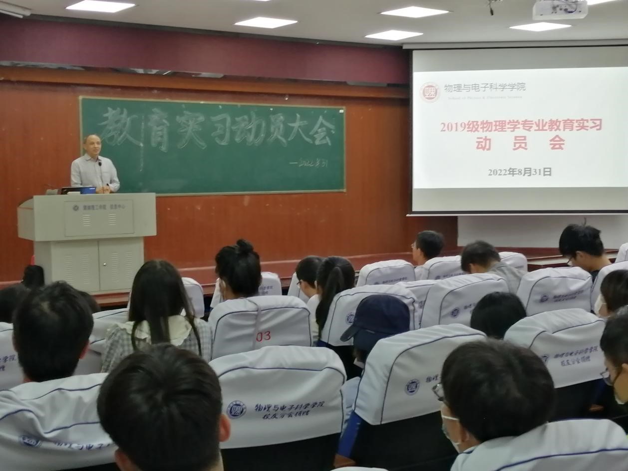 8月31日上午,公司在物电楼学术报告厅举行2022年物理学师范生教育实习动员大会,副经理魏勇、副书记李科敏,实习带队教师陈灏、李照宇、张娜和李奇云等出席,全体2019级物理学(教师教育)专业员工参加。