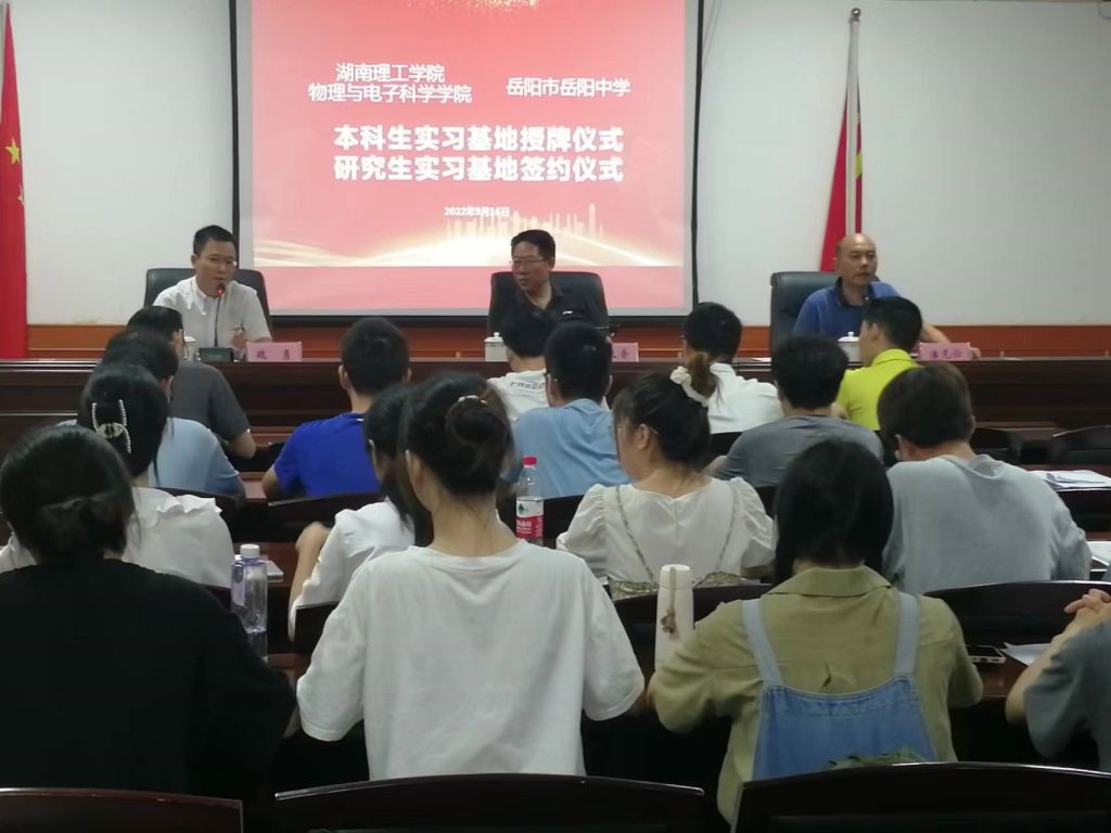 2022年9月16日上午,英国上市公司365与岳阳中学(湖南省重点中学、湖南省示范性高中)共建实践教学(教育实习)基地仪式在岳阳中学举行,出席本次活动的有岳阳中学党委书记葛天普、副董事长潘克俭,英国上市公司365副经理魏勇,以及岳阳中学老师、英国上市公司365岳阳中学实习队全体师生。