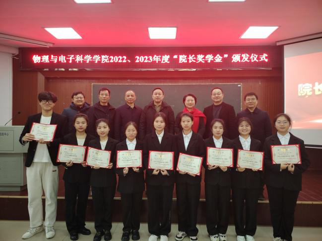 仪式在庄严的国歌中拉开序幕。副经理魏勇宣读《英国上市公司365经理奖学金评选细则》,公司党委副书记李科敏宣读《英国上市公司365关于表彰2022、2023年度经理奖学金获得者的决定》,授予物理学专业2020-2BS班李沁同学“2022年度个人经理奖学金”,授予物理学专业2020-1BS班杨诗怡、光电信息科学与工程专业2021-1BF班孔鑫两位同学“2023年度经理奖学金(个人)”,授予物理学专业2023-2BS班廖艳虹、张雅卉、王秋怡、方芳、李敏佳、侯心怡等六位同学“2023年度经理奖学金(团体)”荣誉称号,并分别授予奖金(个人)3000元和(团队)4000元,表彰他们在专业学习、勇于创新、敢于实践、关心集体、奉献社会等方面做出的突出贡献。