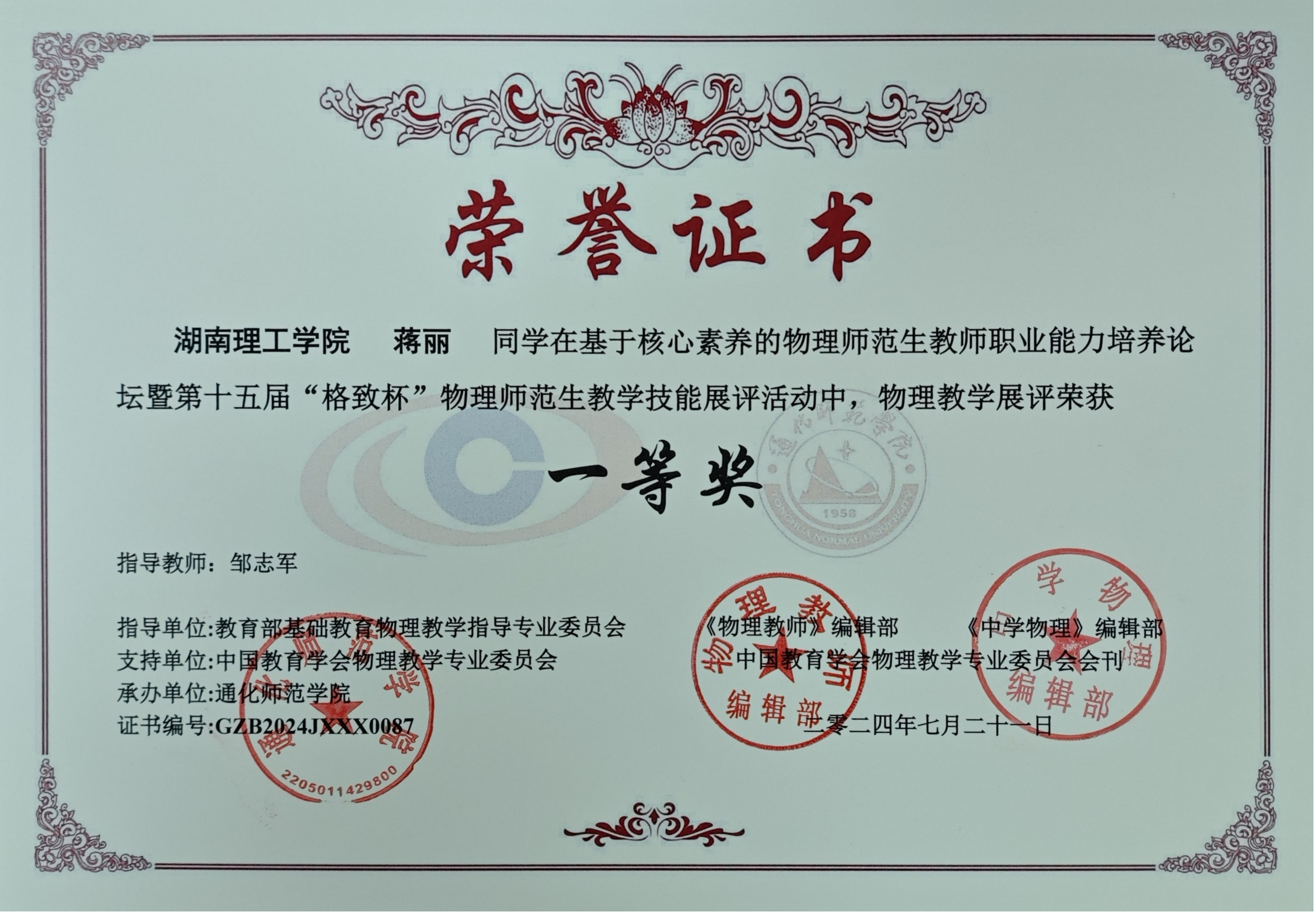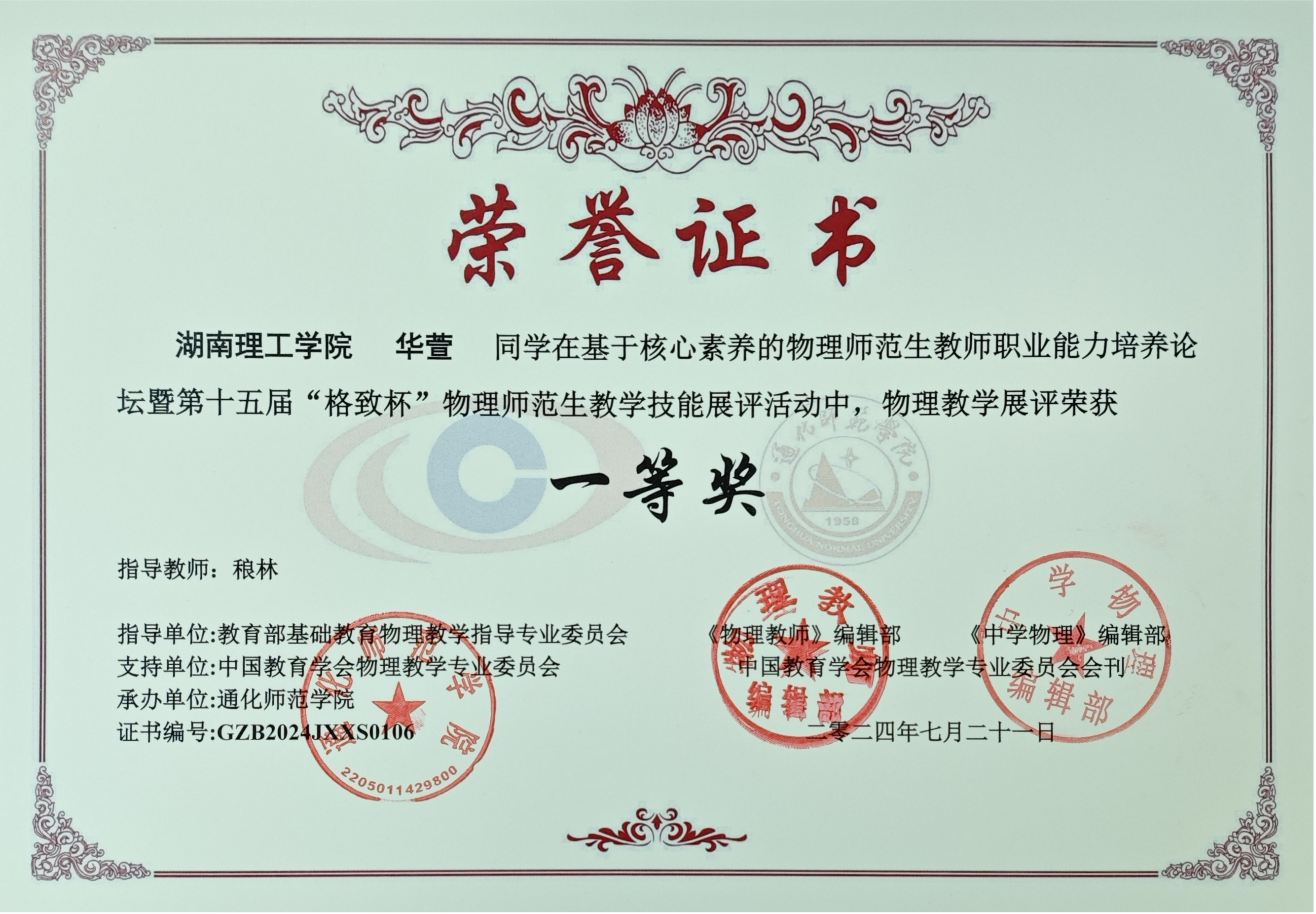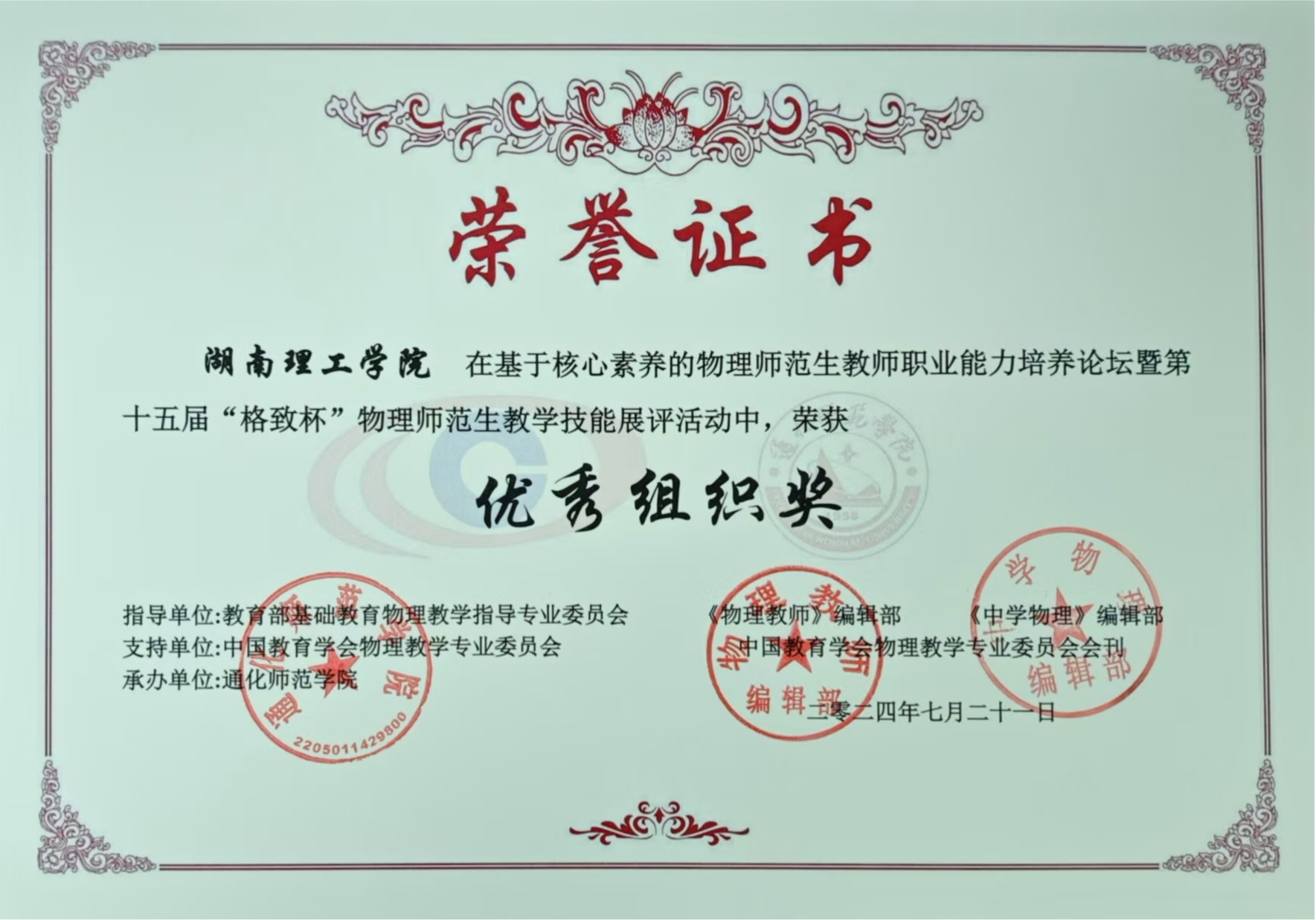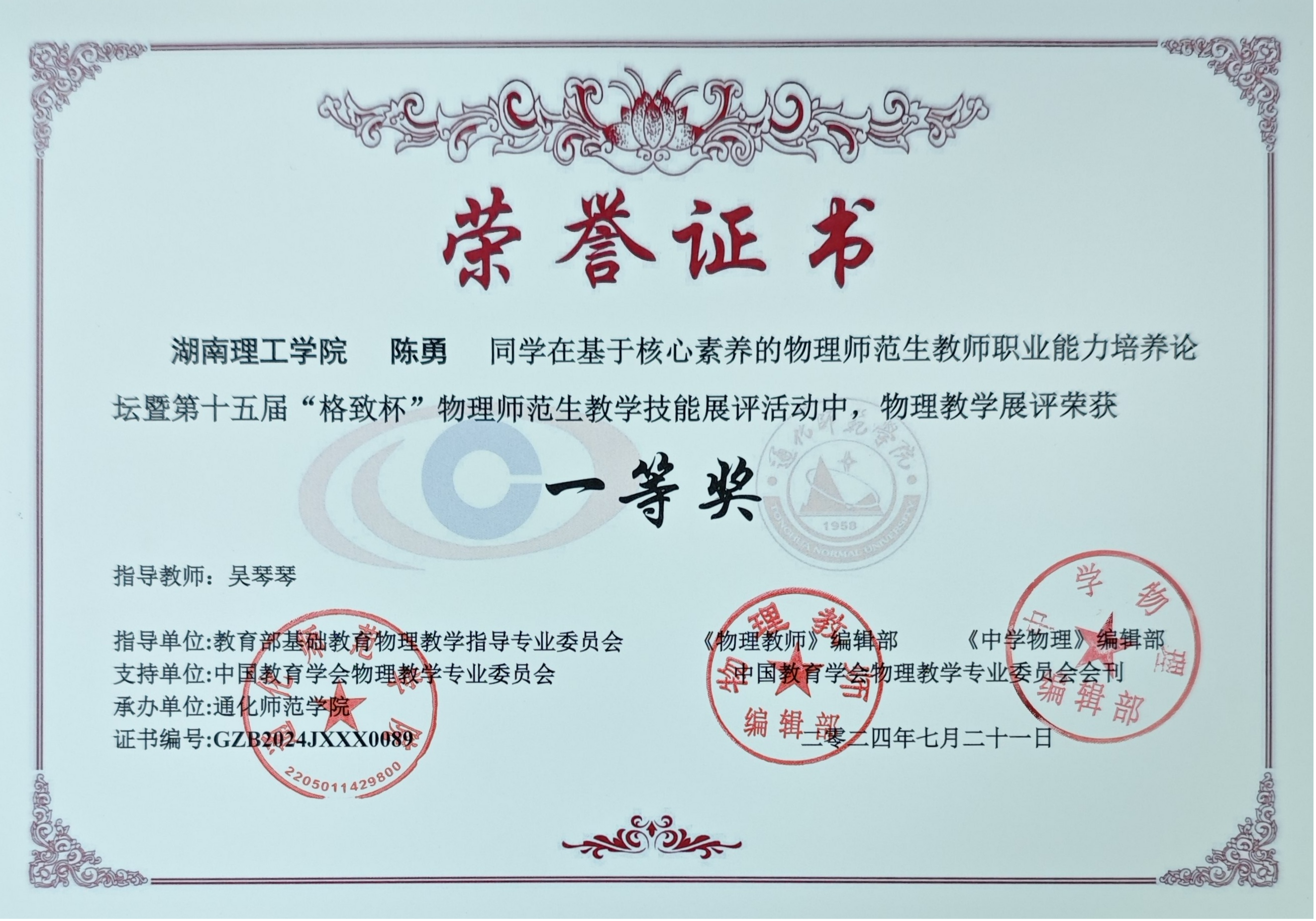 据悉,“格致杯”物理师范生教学技能展评活动是全国高水平的老员工、研究生物理教学技能比赛,也是全国物理师范专业参赛面最广、影响力最大的比赛,迄今已成功举办了十五届。这一赛事活动以其广泛的参与度和深远的影响力,被誉为全国物理教育界的年度盛事,对创新人才培养模式、提高物理师范类老员工与研究生的实践能力和综合素质大有裨益。(图/文 李奇云)