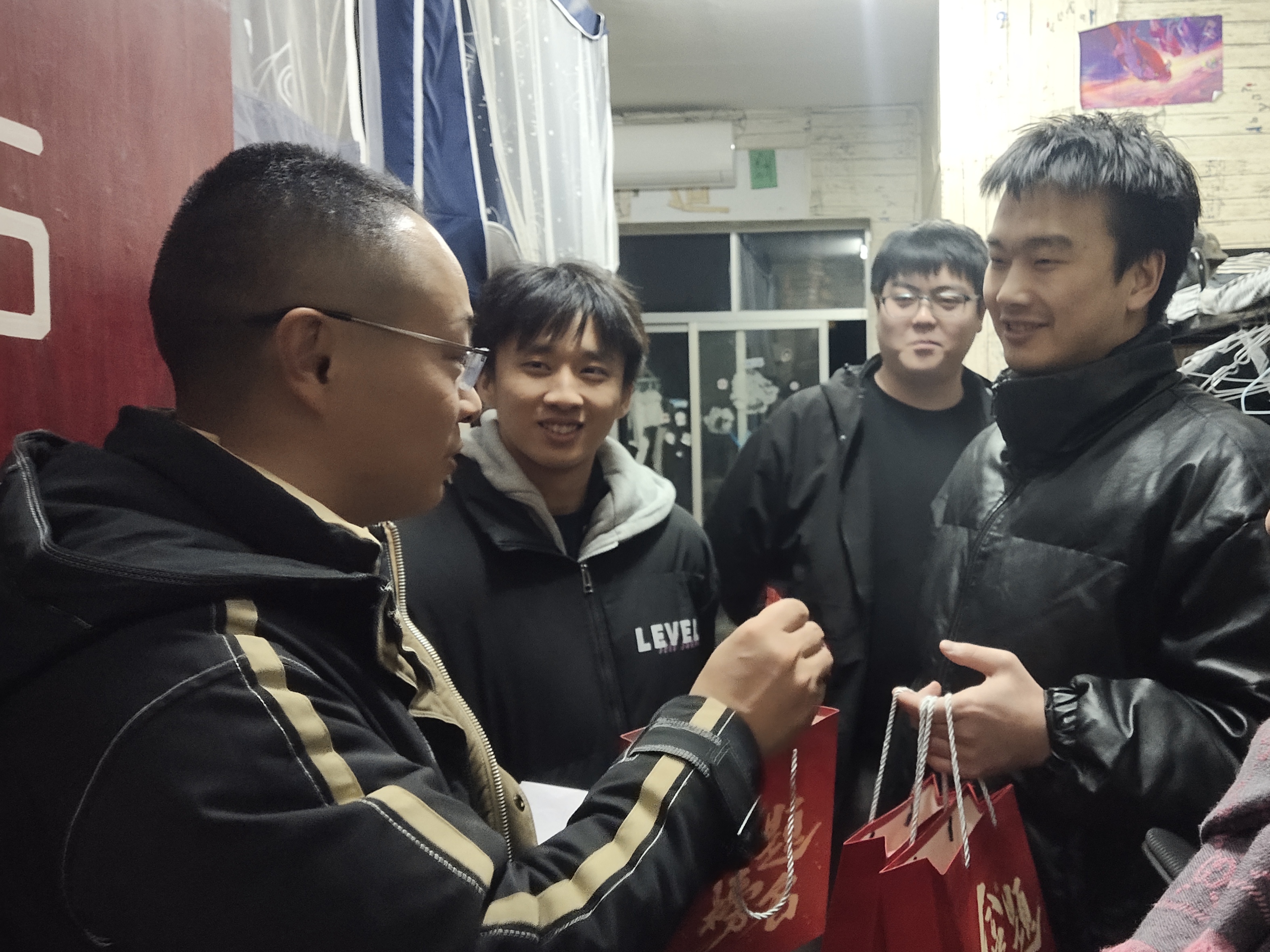 12月18日晚,物电公司党委书记周畅、副书记石红芳、副经理邹志军及辅导员何小娅、李哲君、姚世鹏带领员工干部前往毕业班寝室开展考研慰问活动。