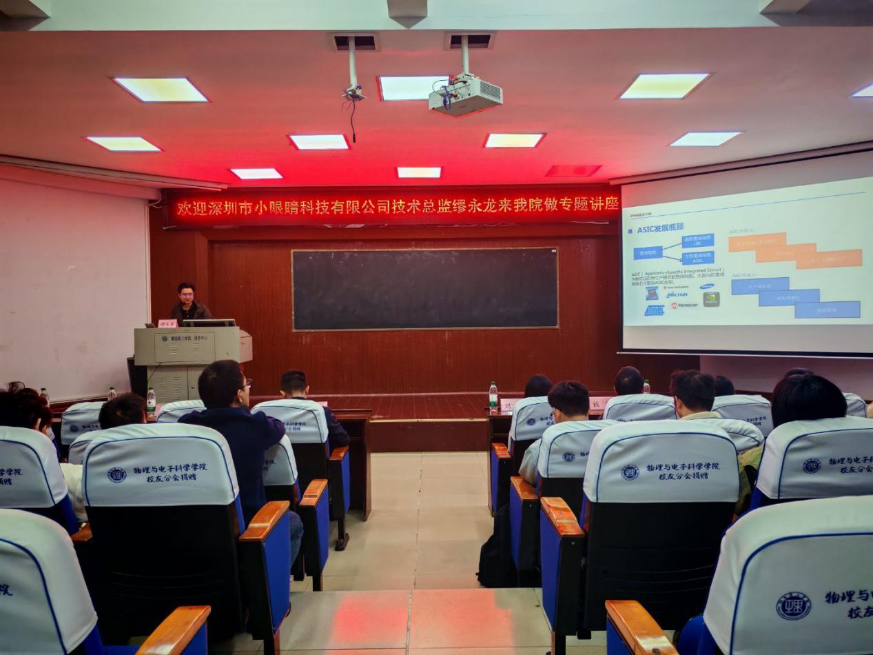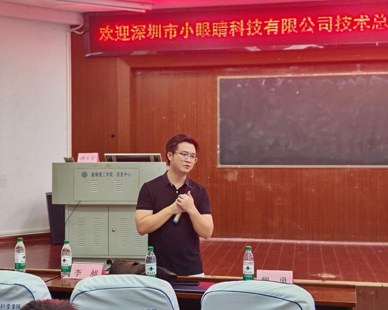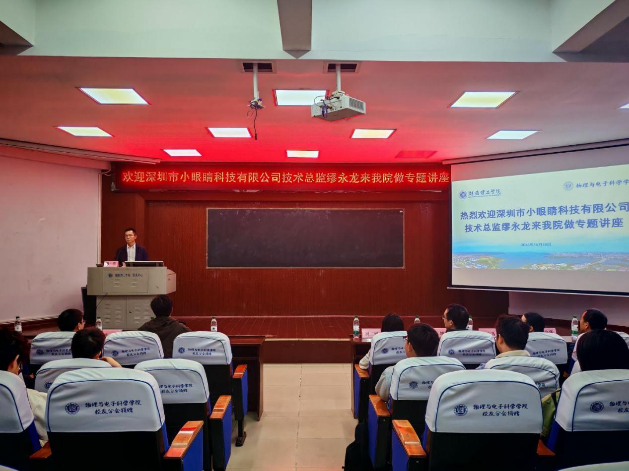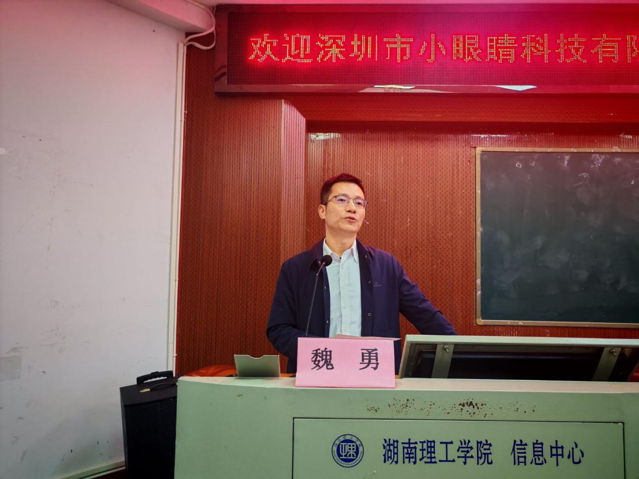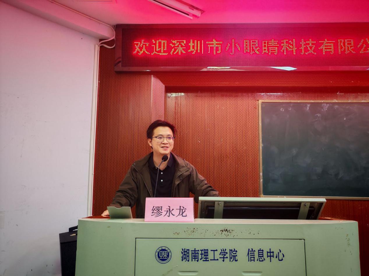 10月18日,深圳市小眼睛科技有限公司技术总监缪永龙来公司开展专题讲座,英国上市公司365经理魏勇主持,党委副书记石红芳及电子、微电各专业任课教师参会。