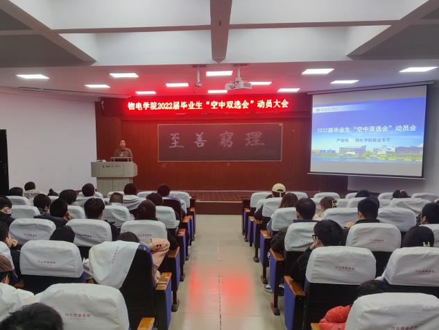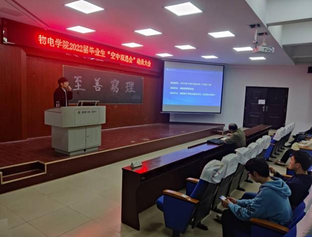 11月23日晚,公司在六栋学术报告厅召开2022届毕业生“空中双选会”动员大会。物电学公司党委副书记李科敏、就业专干严胡伟、2018级毕业生参加。严胡伟主持。