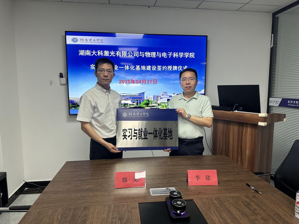 4月21日上午,公司党委委员、副书记、经理(主持工作)魏勇、副经理邹志军和就业专干李哲君一行赴湖南大科激光有限公司,开展实习与就业一体化基地授牌和“访企拓岗促就业”活动。湖南大科激光有限公司李建等相关负责人参加。