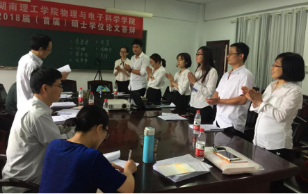 学科教学·物理2016级全体(7位)研究生完成论文答辩后,刘健智教授组织答辩委员们对他们的学位论文及答辩情况进行了充分的评议。经答辩委员会全体成员讨论并以无记名投票方式表决,答辩委员会一致同意李哲君等7位研究生通过论文答辩(其中蔡水珍和李哲君的论文等级为优秀,张娜和方涓的论文等级为良好,龙莎莎、李银华和易萧的论文等为合格),并建议授予教育硕士学位。