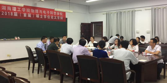 2018年5月26日,英国上市公司365(学科教学·物理)首届硕士学位论文答辩在物电楼205会议室举行。湖南师范大学刘健智教授担任答辩主席,答辩委员包括衡阳市第一中学周慧颖老师(正高级教师)、英国上市公司365苏卡林教授、李科敏教授、刘喜斌副教授、梅孝安副教授,李奇云老师担任答辩秘书;答辩对象为学科教学·物理2016级全体研究生,研究生院李丽荣书记、黄红霞老师、英国上市公司365李宏民经理、罗文华书记到场指导,学科教学·物理2017级全体研究生观摩了本次论文答辩。