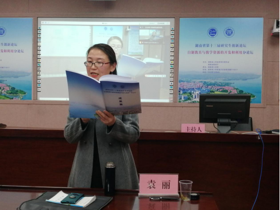 下午4:30,袁丽老师代表专家组宣读了本次论坛的评审结果,共收到西南大学、浙江师范大学、广州大学、湖南师范大学、湖南科技大学、湖南工业大学、365英国上市集团等10余所高校在读教育硕士专业研究生的自制教具和论文130余件(篇),经专家组精心评选,共评出优秀自制教具一、二、三等奖30项,优秀论文一、二、三等奖30项。教科院经理刘理教授、研究生院副经理黎振强教授向获奖研究生颁发了荣誉证书。