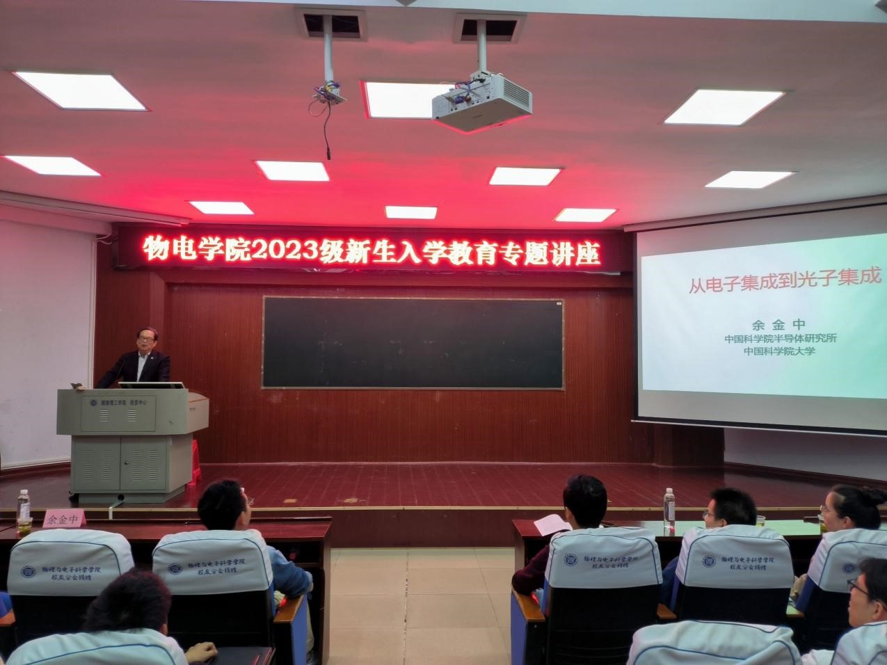2023年10月16日晚,中国科公司教授余金中和研究员王杏华受邀在六栋学术报告厅为英国上市公司3652023级电子、光电和微电专业新生(含研究生)作题为“从电子集成到光子集成”的学术报告。公司党委副书记李科敏主持。