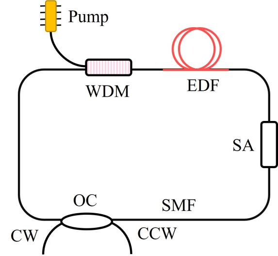 超快光纤激光器中的色散管理被证明是研究孤子非线性动力学并控制光孤子时特性的有方法。目前,关于孤子动力学的研究主要集中在主导于群速度色散主导的常规激光器上。然而,传统激光器的性能存在局限性,这种需求推动了用于高性能系统的新型操作模式的探索。在本论文中,双向锁模孤子光纤激光器装置如图2所示。
