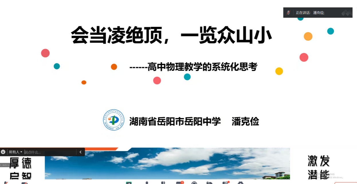 湖南省中学物理特级教师、岳阳中学副董事长潘克俭以“会当凌绝顶 一览众山小”为题,结合典型案例,从“理论溯源,系统学习”“关注政策,聚焦评价”“系统思考,明晰路径”“实践探索,提升素养”四个层面,指导实习生围绕核心素养,积极开展中学物理公司产品。