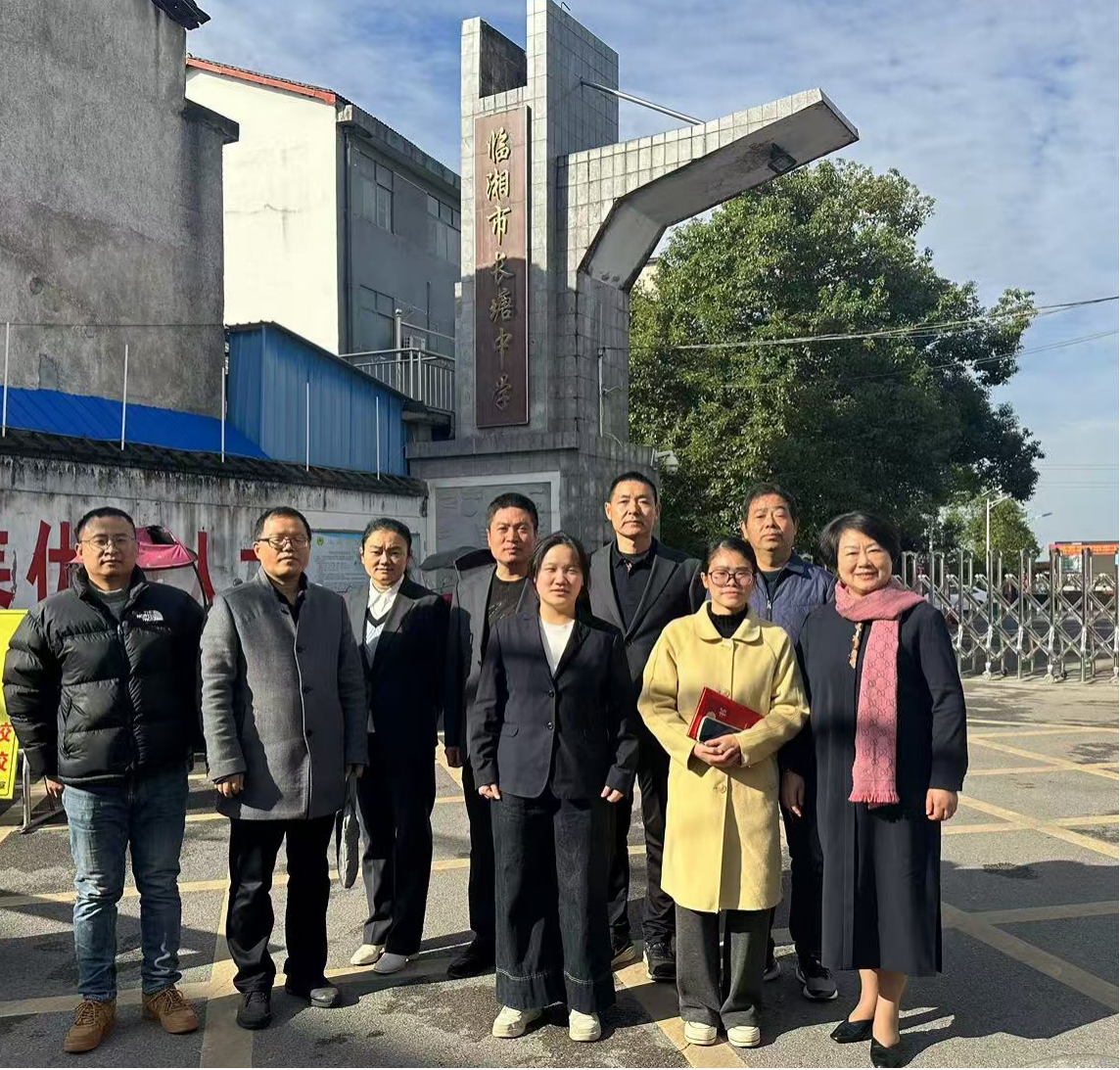 周畅一行与临湘二中主要领导、实习生合影