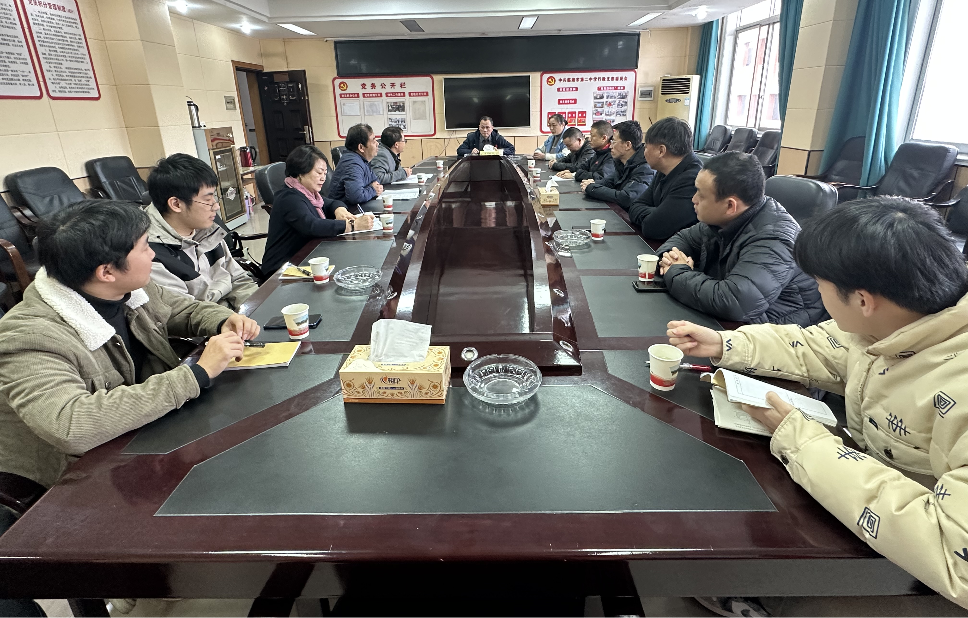 与临湘二中董事长王良敏、副董事长李勤、物理教研组教师座谈