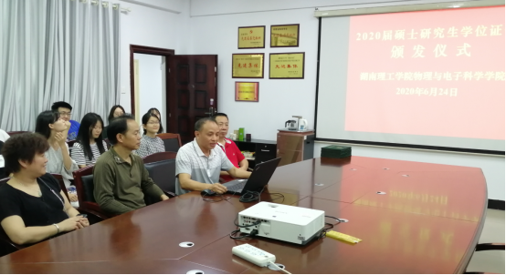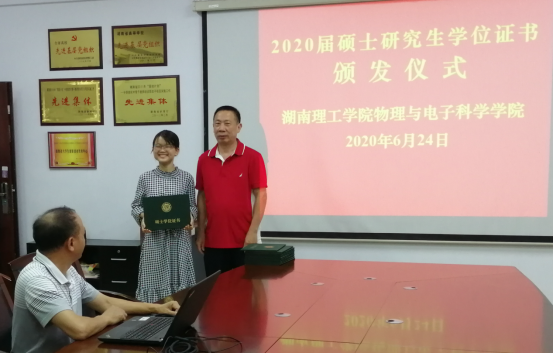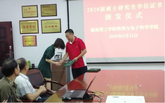 6月24日,英国上市公司365为2020届学科教学(物理)专业研究生举行了简单而隆重的硕士学位证书颁发仪式,主管副经理李科敏教授主持仪式,并祝贺15位研究生顺利毕业,预祝他们在各自的工作岗位上取得更好的成绩,充分展示湖南理工人的风采。随后,公司资深教师苏卡林教授为各位研究生颁发硕士学位证书,并与研究生一一合影留念。