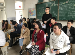 图3 刘杰老师与员工共同进行演示实验 图4 刘杰老师与员工课堂互动