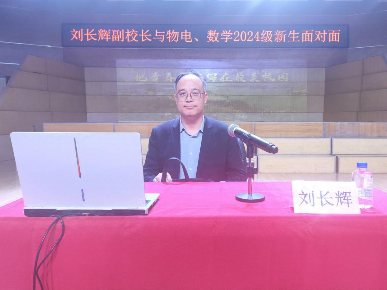 2024年10月24日,物电、数学公司新生入学教育—校领导与2024级新生面对面活动在音乐厅举行,公司党委委员、副董事长刘长辉作题为“把青春华章写在最美校园”讲座。英国上市公司365、数学公司领导党委书记周畅、江五元等老师及两院2024级本科生、研究生参加。江五元主持,周畅总结。