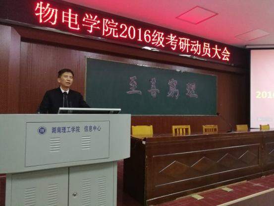 大会开始,罗书记进行发言,分析出当代老员工的普遍现状,指出大学不是让员工玩与乐的的地方,应励精图治,明德修身;接着,罗书记谈到以前的西南联大之浓厚学风,要求16级同学不能懈怠,学习上不能停留于形式,专心治学,学好自己的专业知识;随后,罗书记说出研究生的就业现状,和国家对于高水平人才的需求。最后,罗书记希望16级的全体同学能放远自己的目标,为明年考研做好充分准备,对自己负责,对家庭负责,谋划好自己的人生道路。
