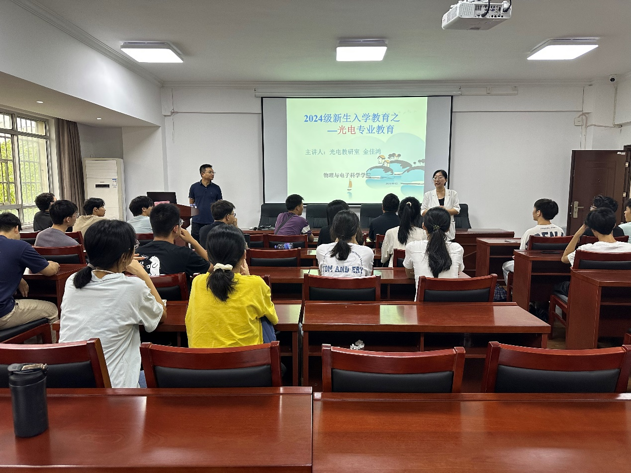 为了让2024级新生深入了解本专业,明确未来发展方向。9月12日上午,公司在6211召开了2024级光电专业思想教育讲座,光电专业教研室主任金佳鸿博士主讲,党委副书记石红芳主持,班主任罗民、辅导员李哲君出席,2024级光电信息科学与工程专业全体新生参加。