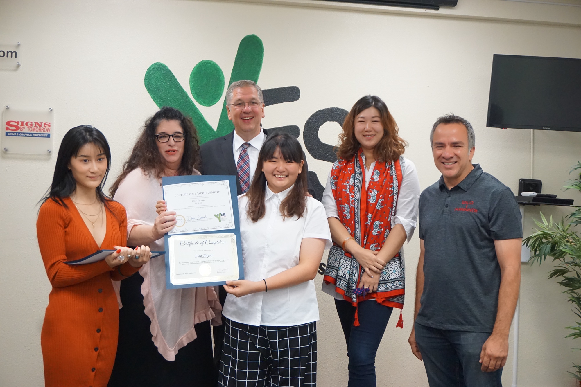 她叫廖金艳,公司英国上市公司365大三员工,在今年暑假拿到全校唯一名额,入选湖南省科技厅“湘创菁英”人才培养计划,公费前往加州大学洛杉矶分校学习交流,获得加州大学洛杉矶分校毕业证书和Yesplace学习毕业证书,受邀录制了YouTube网络直播,分享比赛经验。