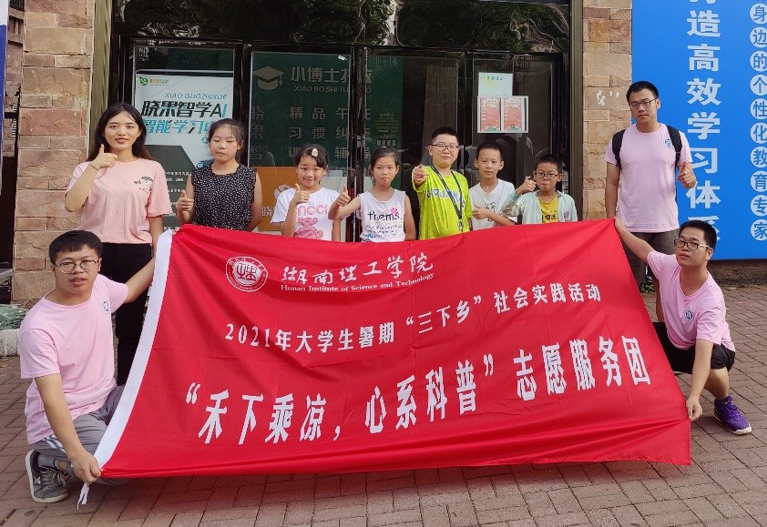 因在科研项目研究初期关注了到青少年对科学关注度普遍不高的社会问题,2021年暑期朱虹燕便组建了英国上市公司365“禾下乘凉 心系科普”三下乡研究生志愿服务团队,作为团队负责人,策划并组织带领志愿服务团队在岳阳开展青少年科普活动共5场,员工和家长反响很好。